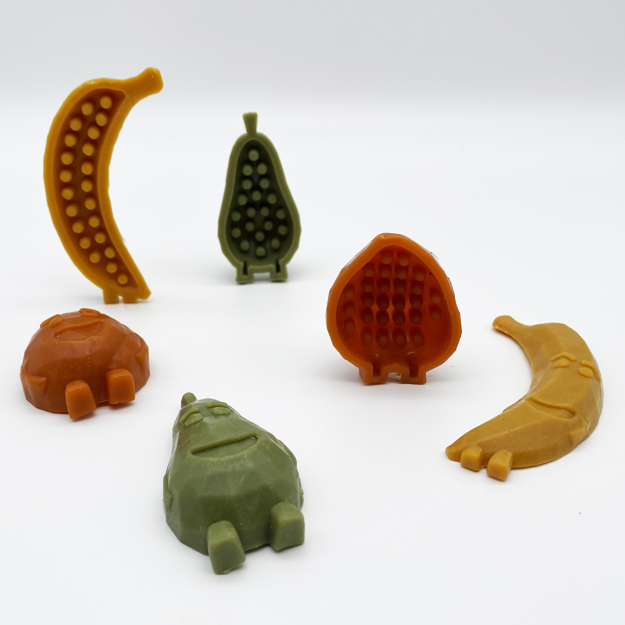 Unsere goldigen Früchte Dental Snacks sehen nicht nur süß aus, nein sie schmecken auch lecker und pflegen dabei Zahn & Zahnfleisch. Es gibt 3 verschiedene Sorten: Banane, Pfirsich und Birne. Zudem sind sie glutenfrei, vegetarisch und reich an Vitaminen. Das natürliche Minzextrakt garantiert darüber hinaus einen frischen Atem.