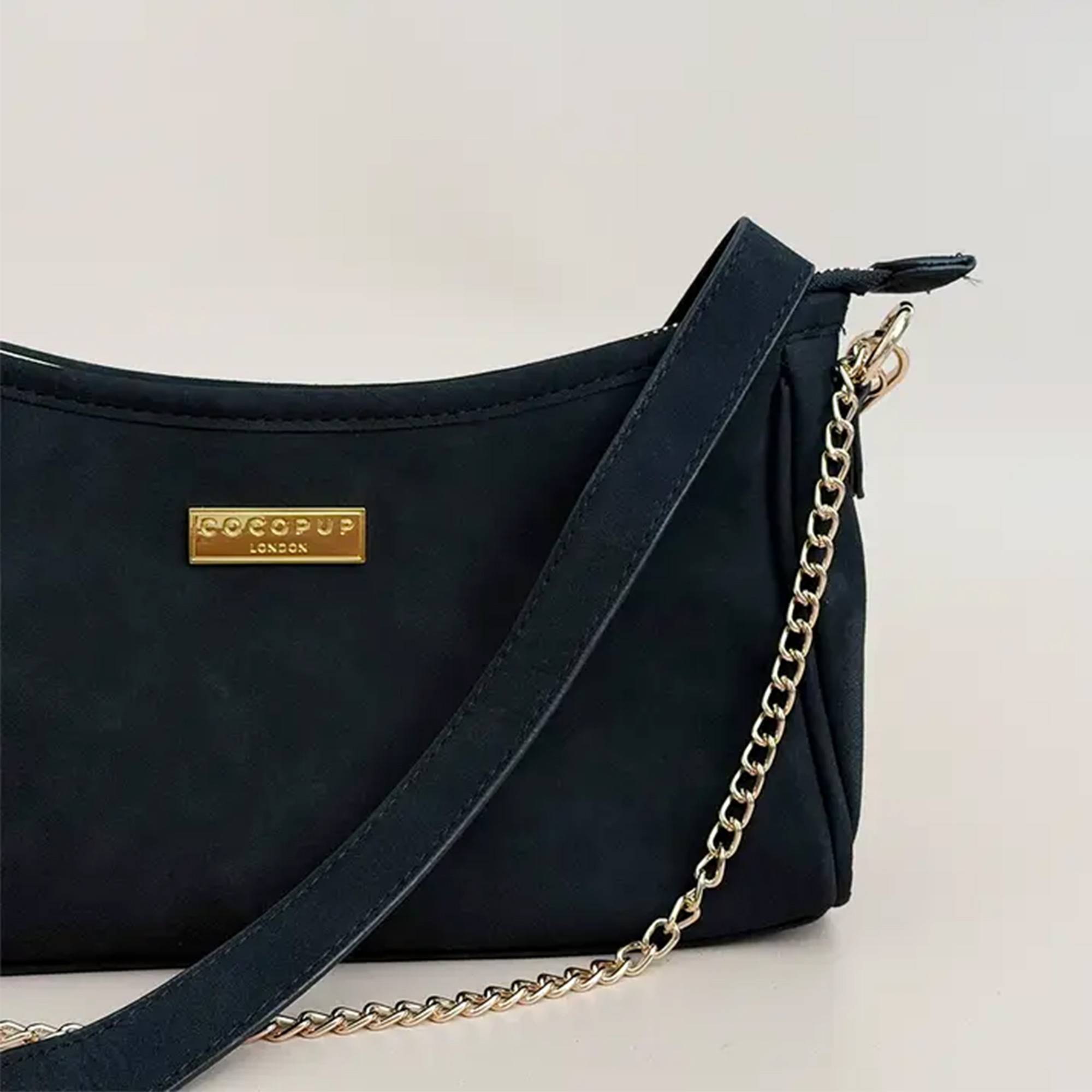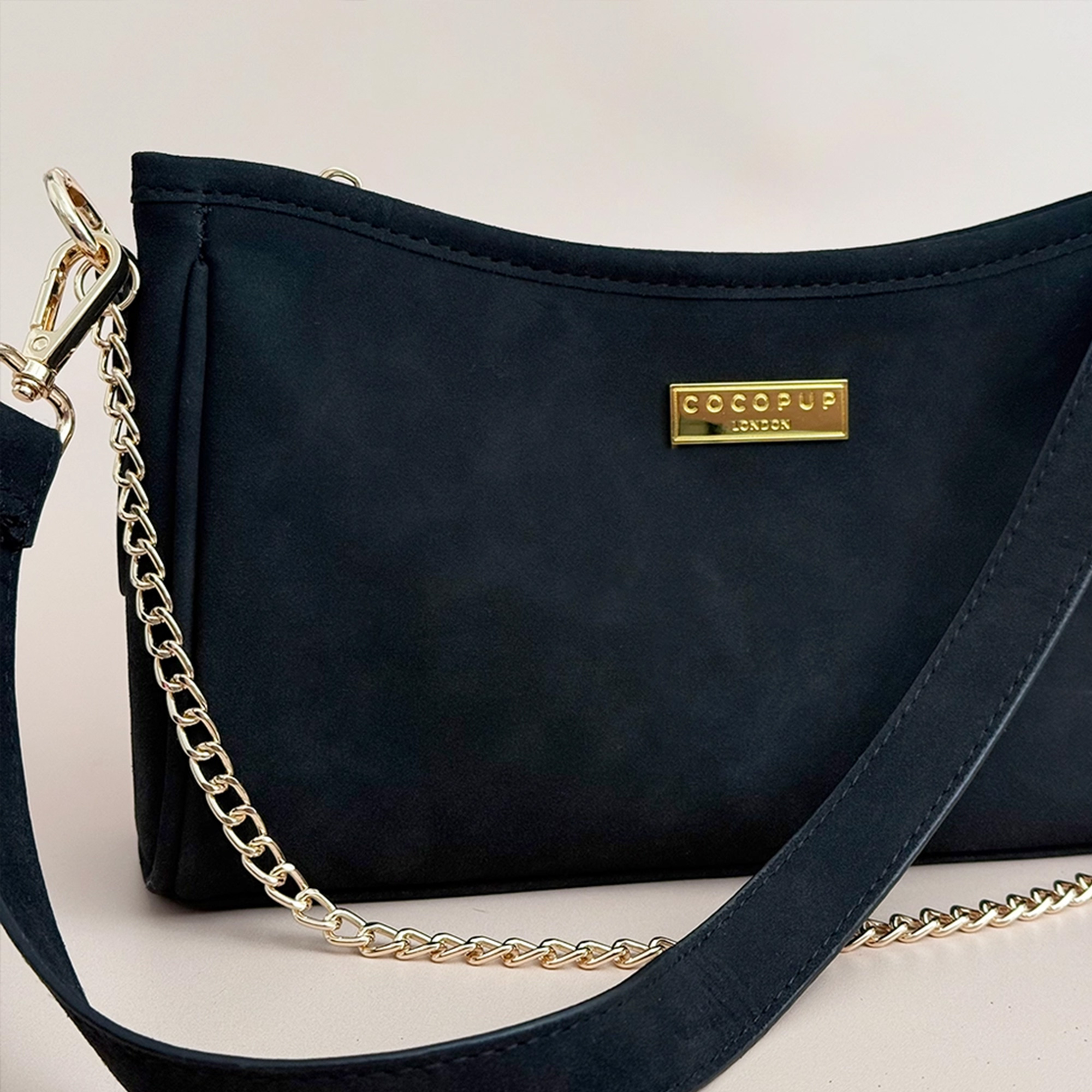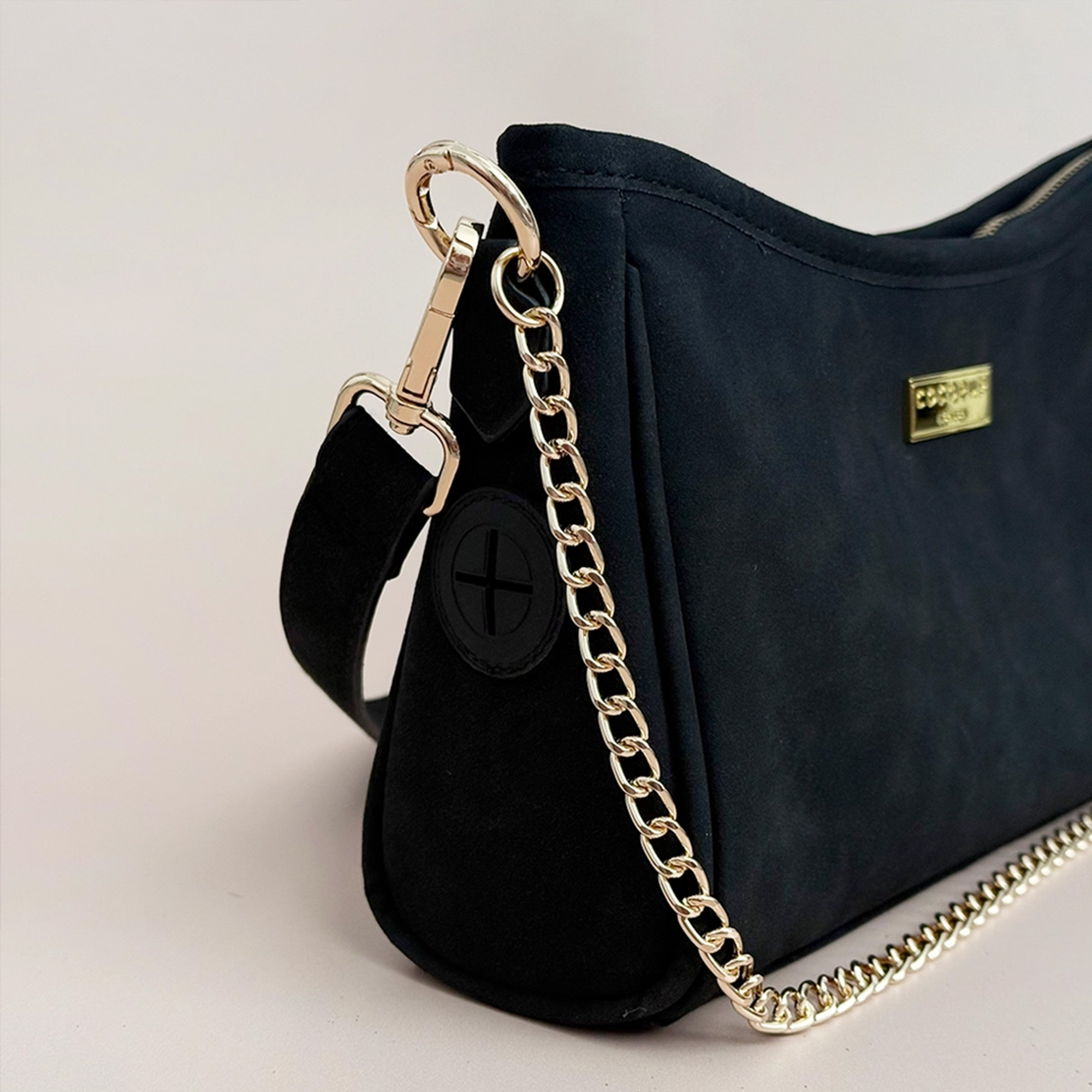 Diese Tasche ist der Beweis, dass "praktisch" auch verdammt gut aussehen kann. Das weiche Kunstwildleder in tiefem Schwarz wirkt super edel und passt einfach zu jedem Outfit – egal ob du im entspannten Look durch den Park schlenderst oder dich für die City schick machst. Die goldenen Beschläge setzen dabei genau die richtigen Akzente.