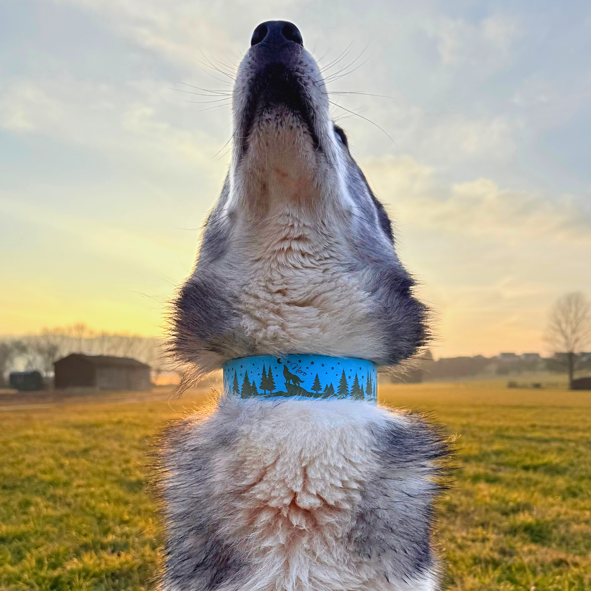 Weil ein Panorama Platz braucht! Damit die feinen Baumwipfel, die Sterne und die Silhouetten der Tiere voll zur Geltung kommen, fertigen wir die "Wildnis"-Edition exklusiv als breites 38mm Halsband. Das sieht nicht nur nach echtem Statement aus, sondern verteilt auch den Druck am Hals optimal – perfekt für mittelgroße und große Entdecker.