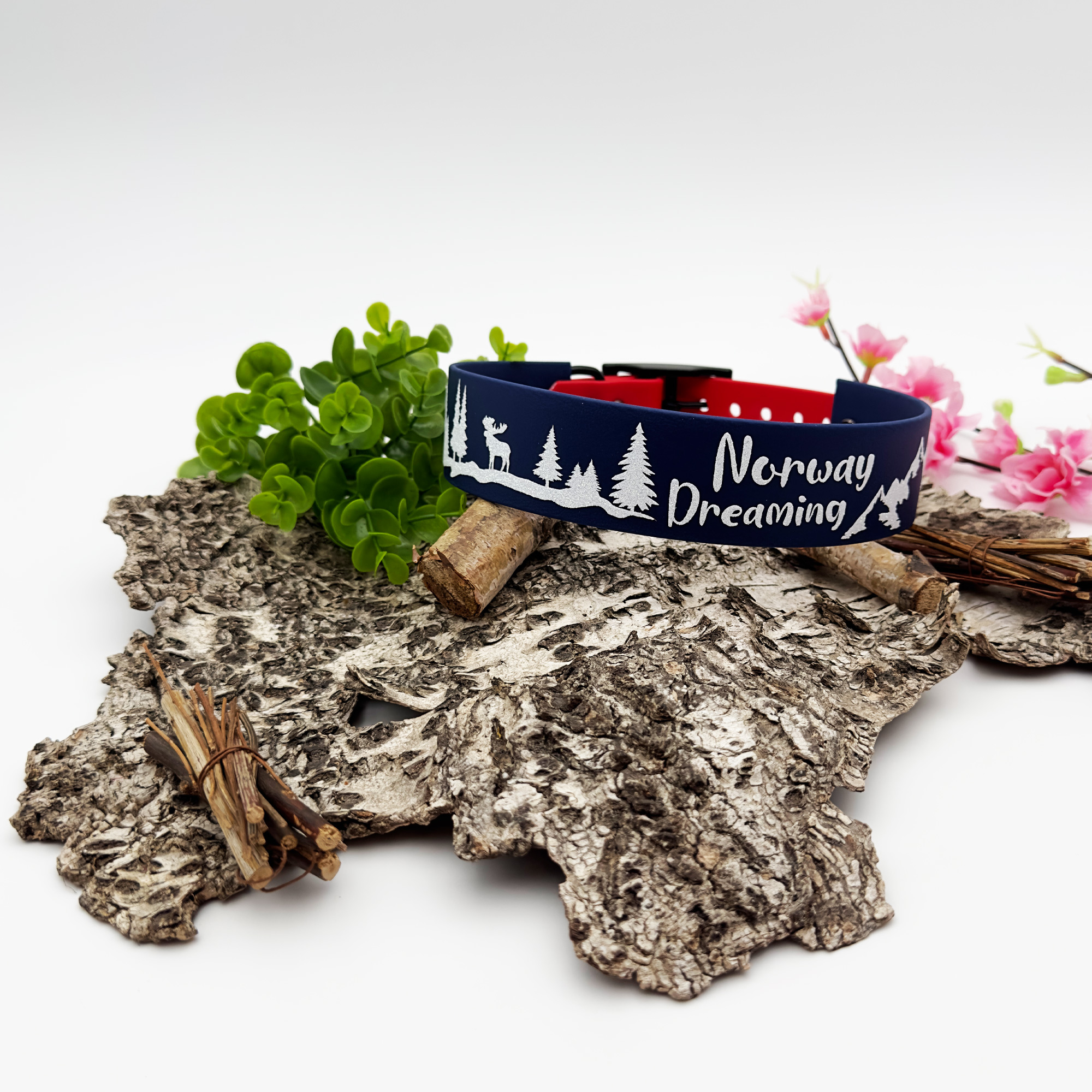 Du kaufst ein qualitativ hochwertiges Biothane Halsband für Liebhaber von echter Handwerkskunst. Unser individuell gestaltbares Halsband ~Wildnis~ kannst Du ganz nach deinem Belieben gestalten, wodurch Du Dein eigenes Unikat bekommt, welches natürlich ein echter Blickfang auf jedem Spaziergang ist.