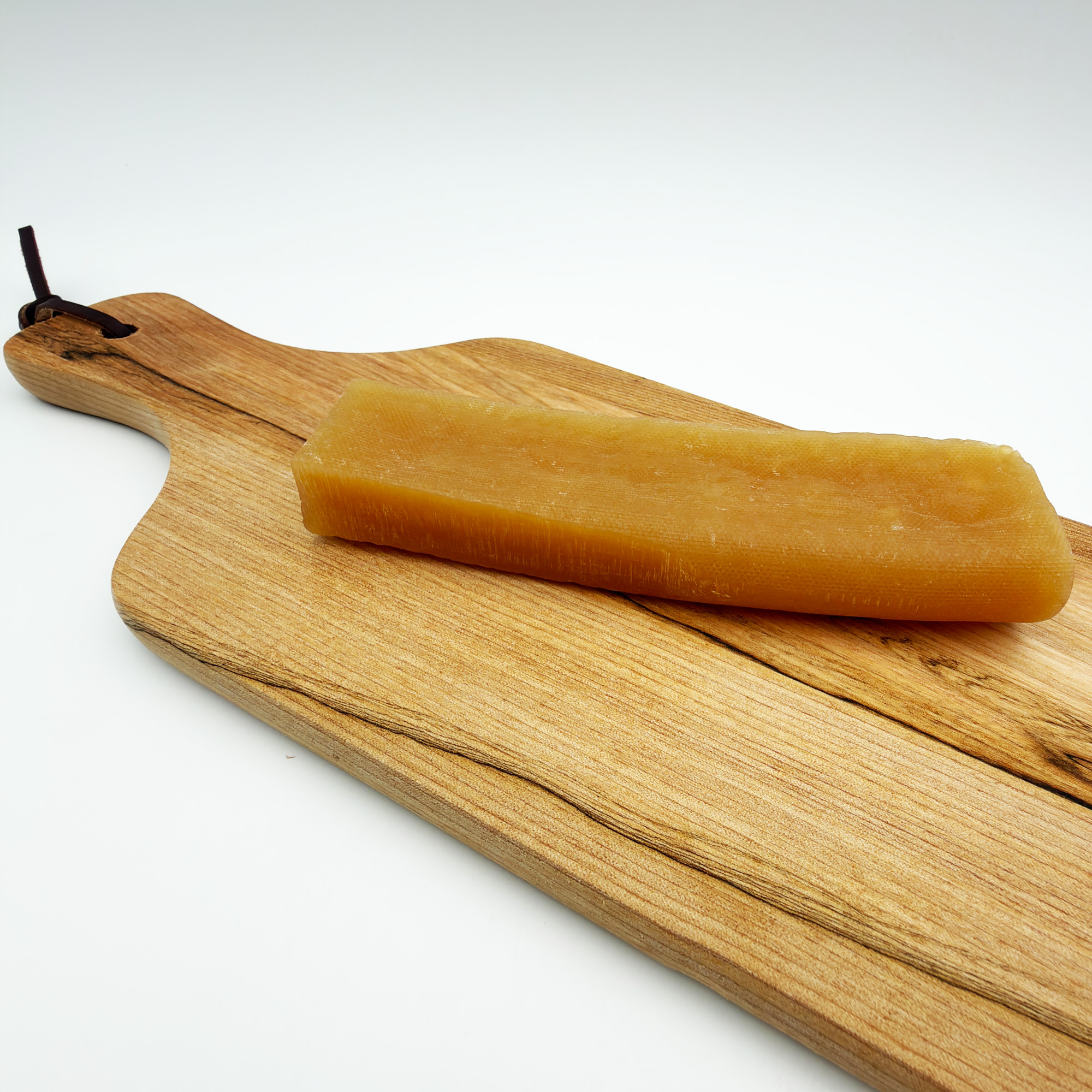 Unser Klassiker, handgefertigt nach jahrhundertealter Tradition. Dieser vegetarische Käseknochen wird aus Milch gewonnen, in Jute gepresst und leicht geräuchert für ein unvergleichliches Aroma.