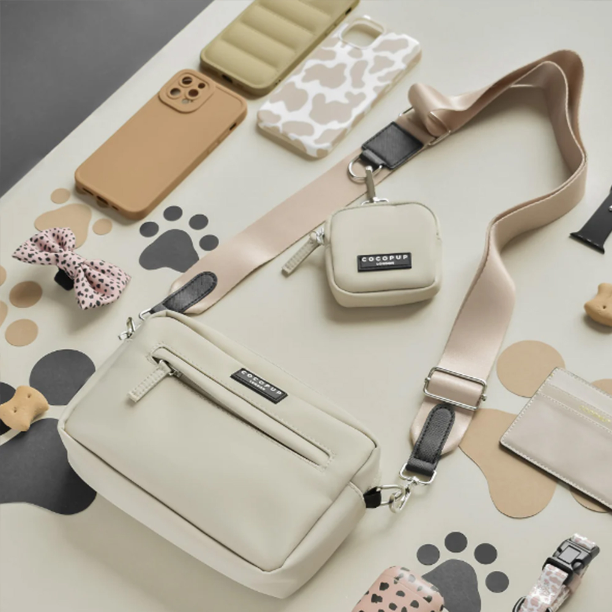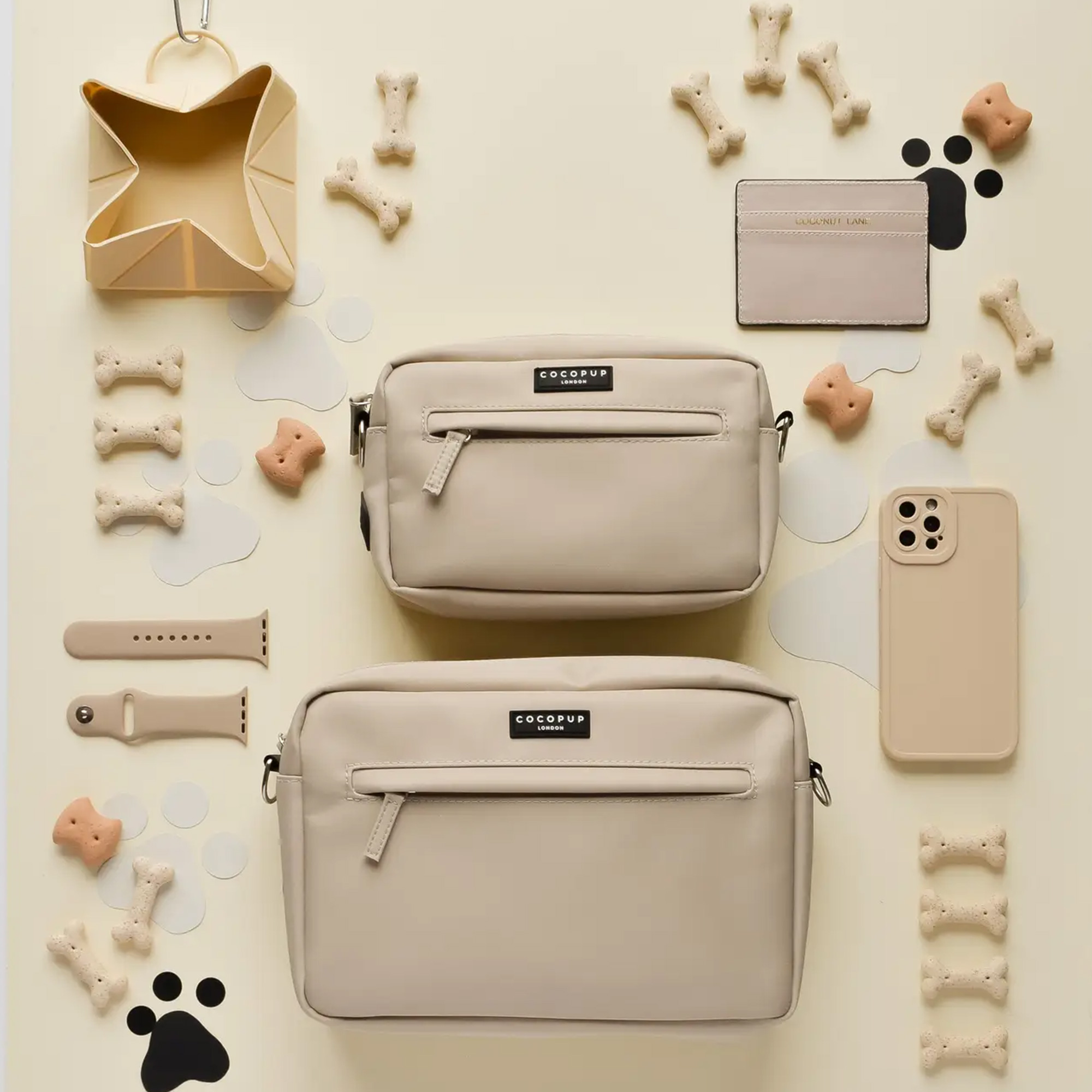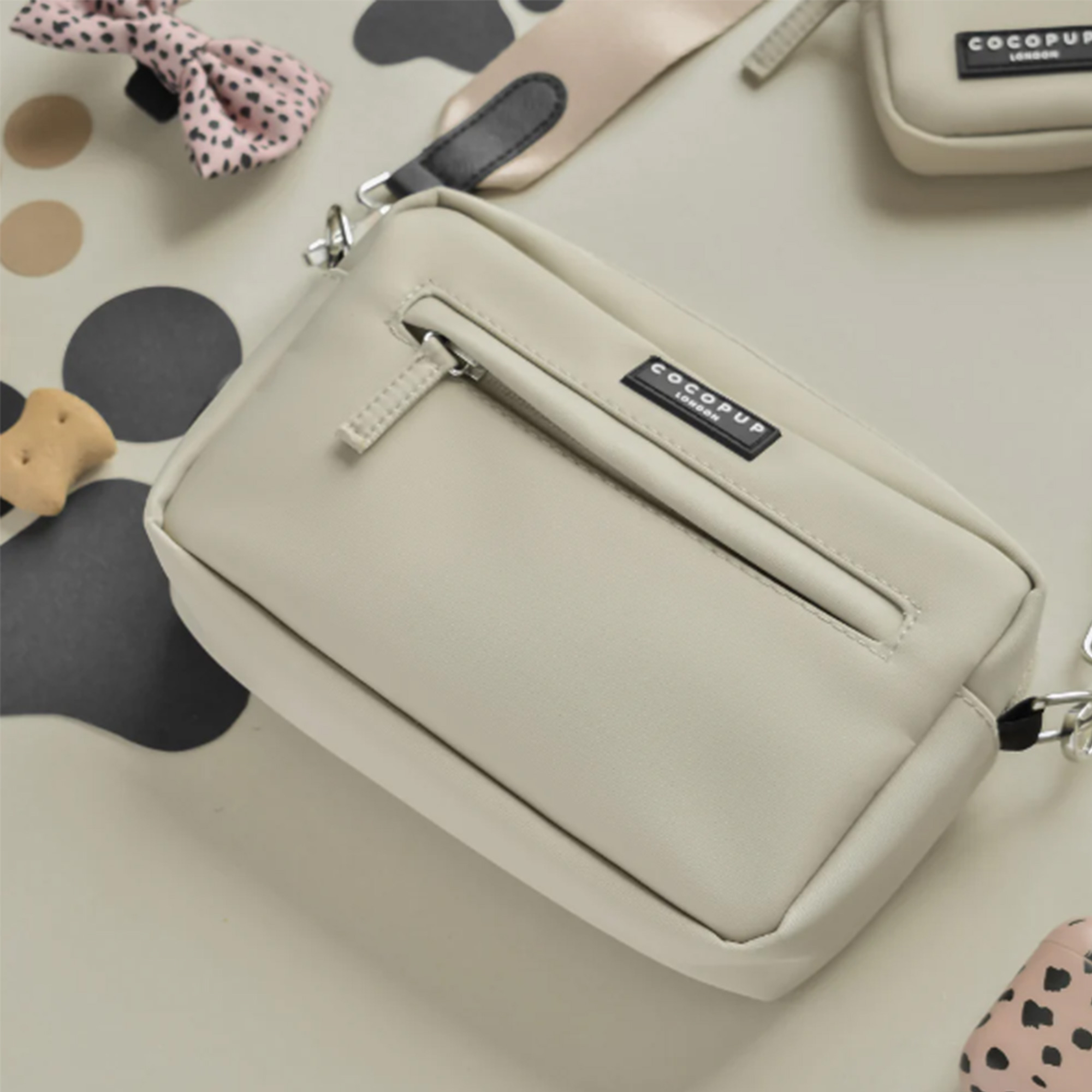 - Zusätzlich lassen sich Accessoires wie der faltbare Reisenapf oder ein Kotbeutelhalter direkt an der Tasche anbringen (ebenfalls separat erhältlich).