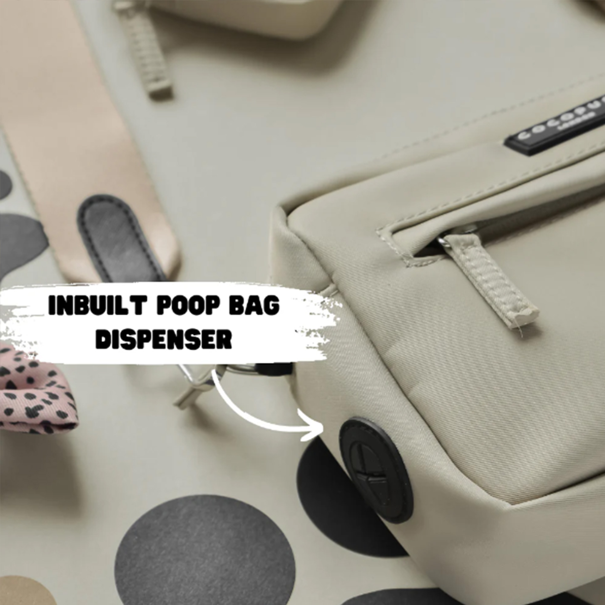 - Integrierter Kotbeutelspender mit Mesh-Fach zur Fixierung der Rolle