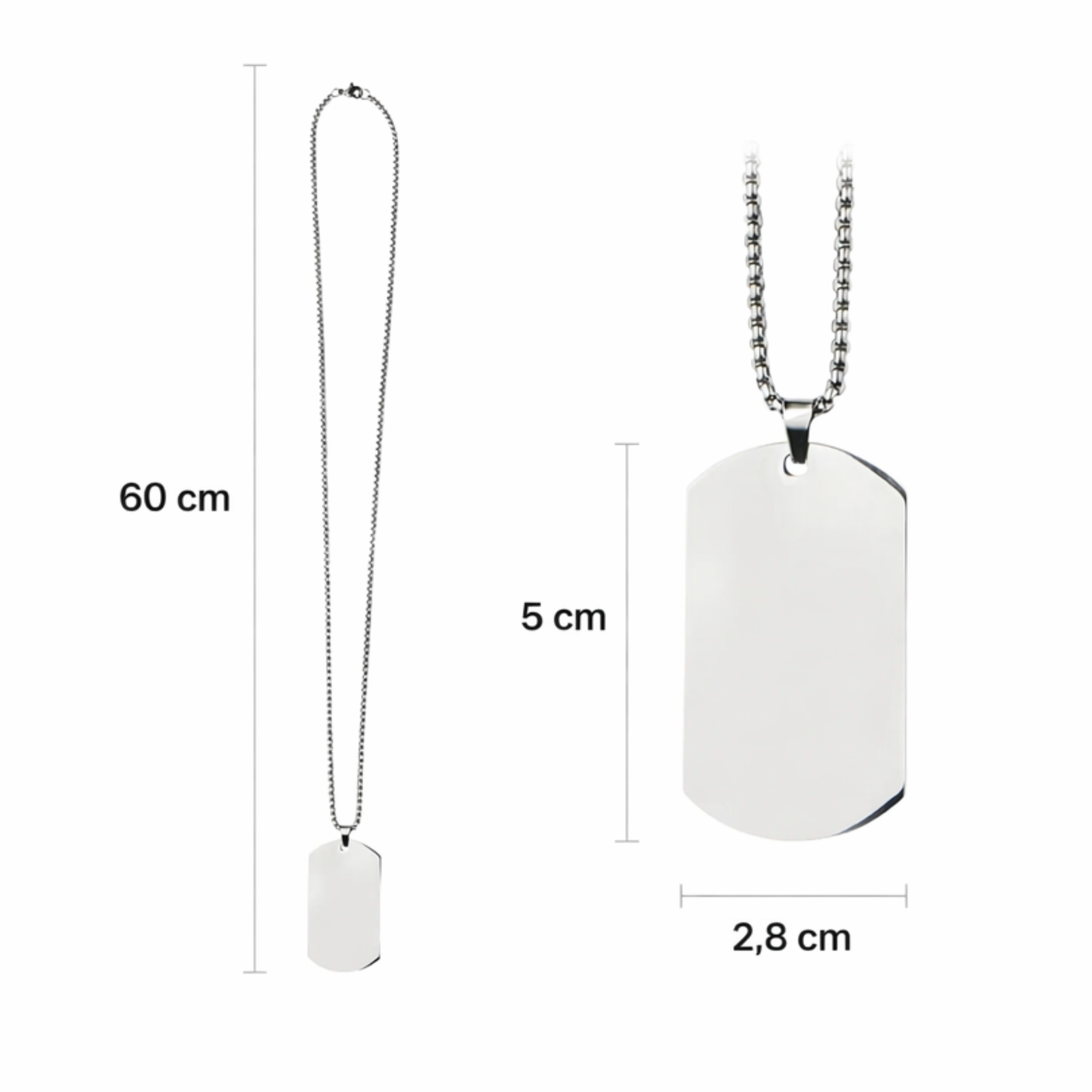 Unsere MilitĂ€r-Halskette aus hochwertigem Edelstahl steht fĂŒr zeitloses Design und langlebige QualitĂ€t. Der schlichte, robuste AnhĂ€nger im klassischen Military-Stil eignet sich perfekt fĂŒr den tĂ€glichen Gebrauch und bietet eine ideale OberflĂ€che fĂŒr individuelle Gravuren.