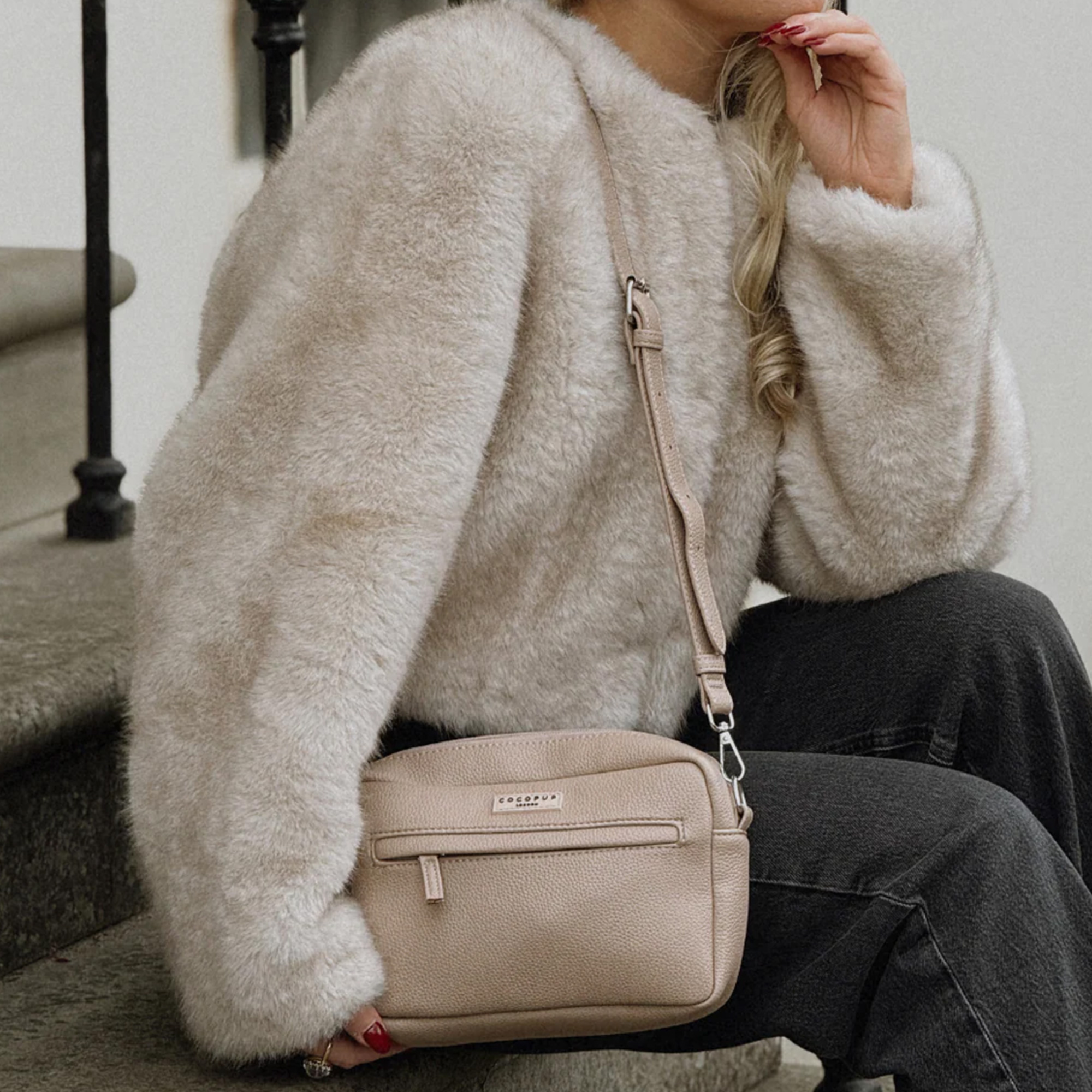 - Farbe: Trendiges Caramel mit silbernen Beschlägen