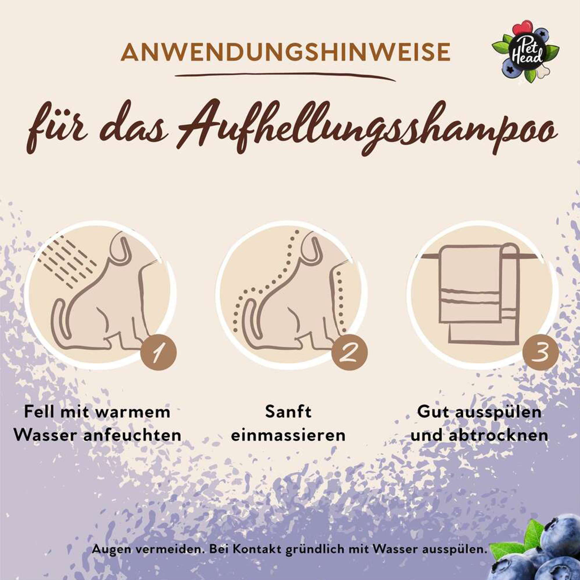 Das Pet Head Berry Bright Shampoo bringt weiĂes und helles Fell wieder zum Strahlen! Die spezielle Formel mit zerstoĂenem Violettpigment neutralisiert gelbe und kupferfarbene Töne und sorgt fĂŒr einen klaren, leuchtenden Glanz. Arganöl und Vitamin E pflegen und stĂ€rken das Haar, wĂ€hrend der fruchtige Heidelbeerduft fĂŒr einen frischen, sauberen Geruch sorgt.Â